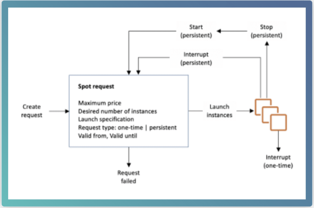 A Spot instance can be started in 2 different ways: you can either create a Spot Instance request or have AWS EC2 create one on your behalf. When starting a Spot instance, it is important to know that Spot pools have their own rates and these rates change less often. AWS will give you a 2-minute warning before taking back any Spot capacity you are using.