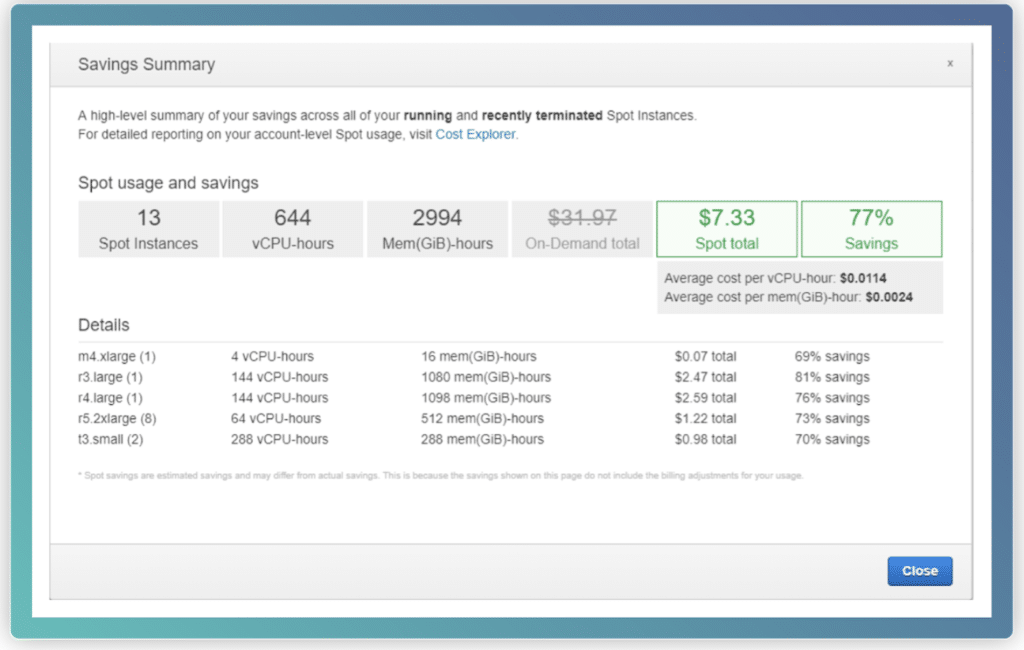 Spot Instance Cost Saving