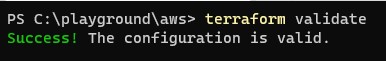 With Terraform initialized, we can go ahead and validate our code using the validate command: