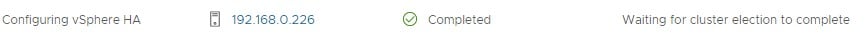 Once you have enabled vSphere HA, the HA agent will begin installing on all the hosts, and the HA election process will start behind the scenes: