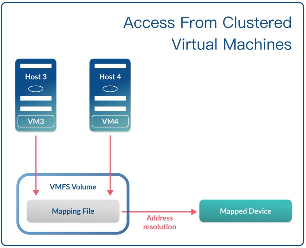 The SAN LUN configuration is still quite popular. Often, this is how VMware datastores are made available to multiple ESXi hosts. When we try to bring VMs into the mix, it gets a bit more complicated. RDM provides similar functionality to VMs.